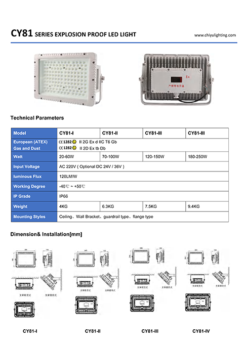 Explosion-Proof Construction:ADC12 die-cast aluminum housing with electrostatic powder coating (salt spray resistance ≥500h), 10mm tempered glass cover (transmittance ≥92%), stainless steel explosion-proof bolts. Ex d IIC T6 Gb certification for Zone 1/2 IIA-IIIC explosive gas environments.