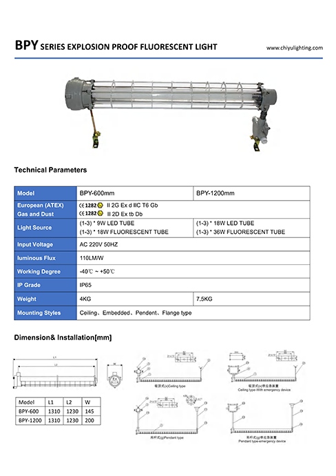 Installation & Maintenance:M20×1.5 explosion-proof cable glands, steel conduit compatible; ceiling/wall/suspension mounting options, weight ≤3.5kg, adjustable mounting hole spacing (100mm/200mm).