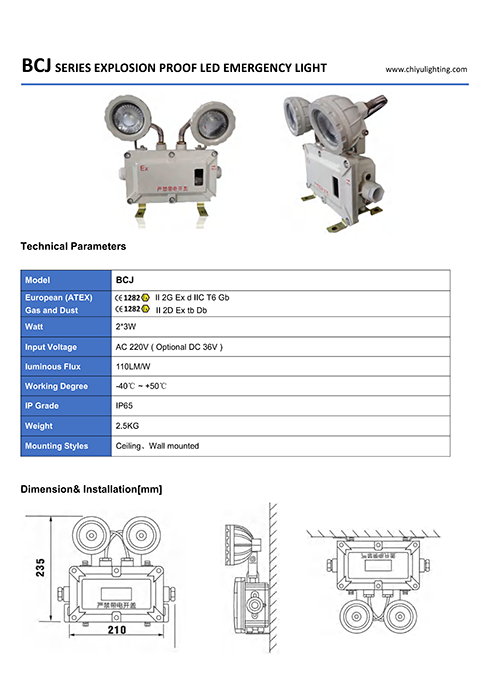 Emergency Features: Built-in backup power module with automatic switchover (response time <0.5s), continuous lighting ≥90 minutes, 360° rotatable lamp heads, compatible with AC220V/DC24V wide voltage input.