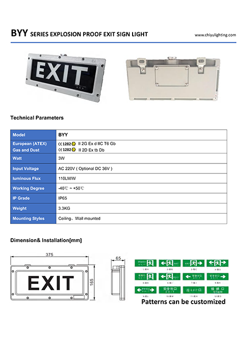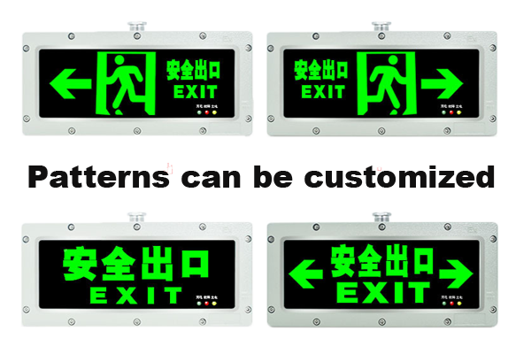 Explosion-Proof Construction:Light gray die-cast aluminum housing (sandblasted finish), black panel with white "EXIT" sign (acrylic, UV-resistant). Top metal adjustment knob, red "Ex" marking on right side. Ex d IIC T6 Gb certification for Zone 1/2 IIA-IIIC explosive gas environments.