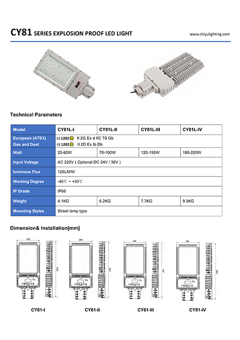 CY81 Series Explosion-Proof LED Street Light Product Features:
