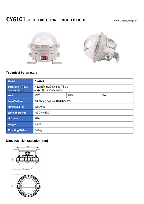 Optical Features: Integrated LED light source with uniform soft light, adjustable multi-angle installation, AC220V power supply compatible, widely used in oil platforms, chemical pipeline areas, mine passages and other hazardous environment lighting.