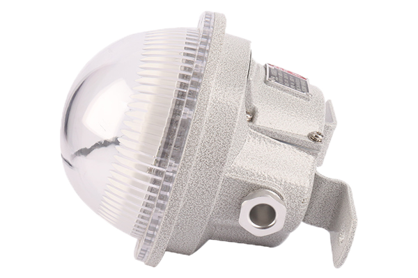 Product Features: Explosion-Proof Construction:Silver-gray die-cast aluminum housing (rough texture finish), top transparent hemispherical lampshade (with vertical stripe diffuser), stainless steel explosion-proof bolts, bottom metal mounting bracket (with slotted hole adjustment). Ex d IIC T6 Gb certification for Zone 1/2 IIA-IIIC explosive gas environments.